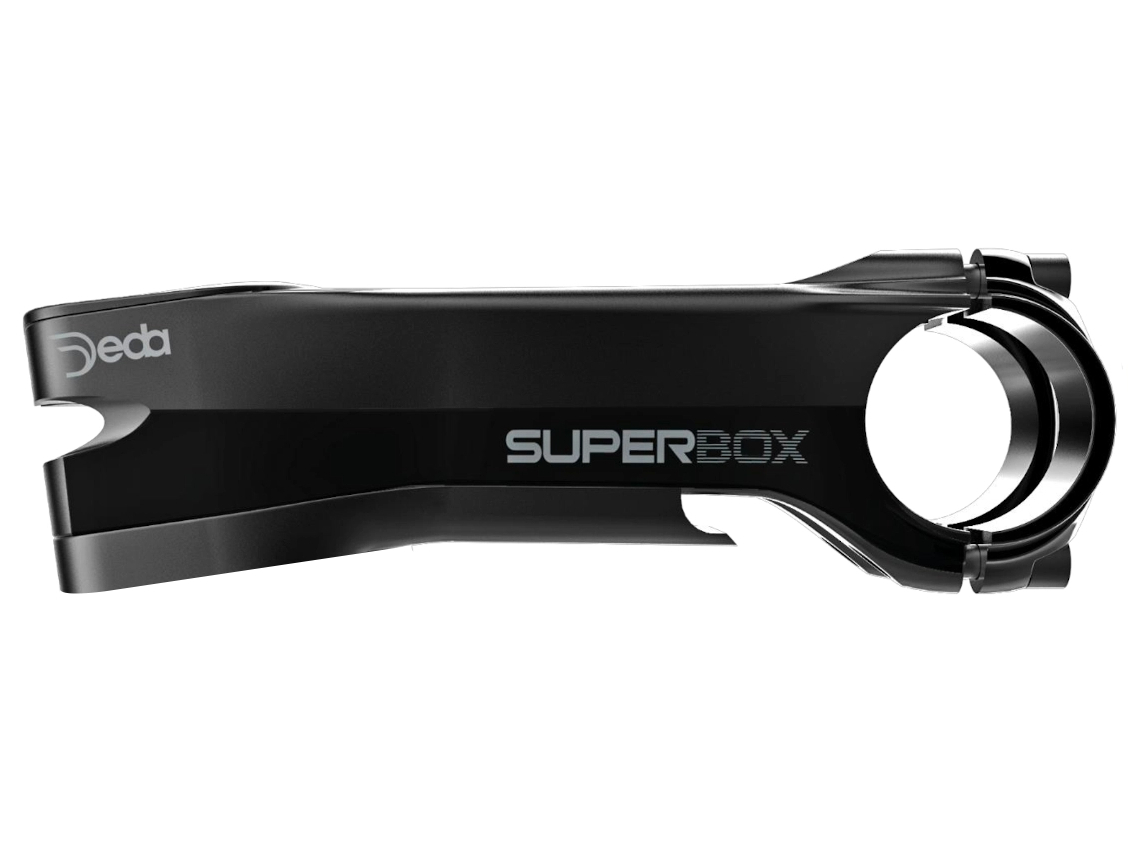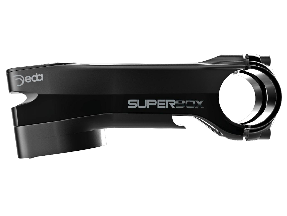 Superbox® works with 1-1/8” standard fork steerer, the stem is compatible with a 46 mm (for 1-1/8” bearing) or 56 mm (1.5” bearing) upper headtube. The stem package includes special spacers that provide the channels for the housing cables. Spacers and the nylon cover are designed with slits that let them pull open, they can be added or removed to get the fit right without having to remove all cables. The innovative 3D forging technology and the flat design result in a better aero performance. The Superbox stem is offered in different lengths from 90 to 140mm to enable riders to find their ideal riding position. The nylon cover, the integrated topcap and headset spacers, the 46 & 56 mm topcover complete the line of accessories included.