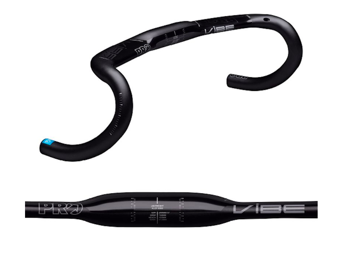 The PRO Vibe Aero Alloy Pursuit integrates an aerodynamic design and internal cable routing into an affordable 6066 alloy handlebar.